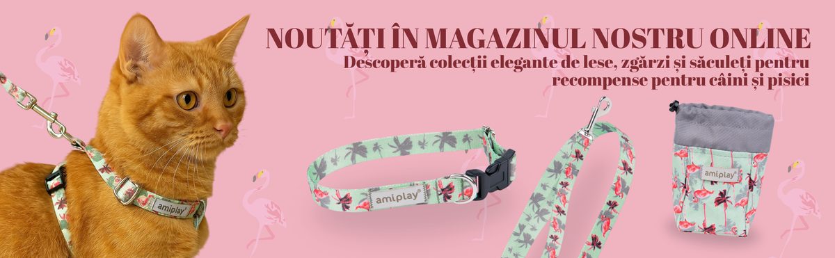 Pelíšek pro psa Reedog Fancy Red Zgarda din piele Flamingo Leza albastră