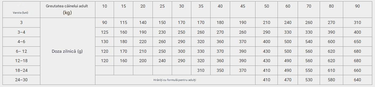 Hrană uscată completă cu carne de pui pentru căței de rase mari, care oferă câinelui aflat în creștere energia și toți nutrienții necesari pentru dezvoltarea și creșterea sănătoasă. În total, 90% din proteinele conținute sunt de origine animală. Crochetele conțin condroprotectoare, care ajută la menținerea cartilajului articular în timpul creșterii și previn problemele articulare la vârsta adultă. Vitaminele și mineralele contribuie la sănătatea generală și la întărirea imunității. Uleiul de somon sprijină sănătatea pielii și oferă o blană strălucitoare.