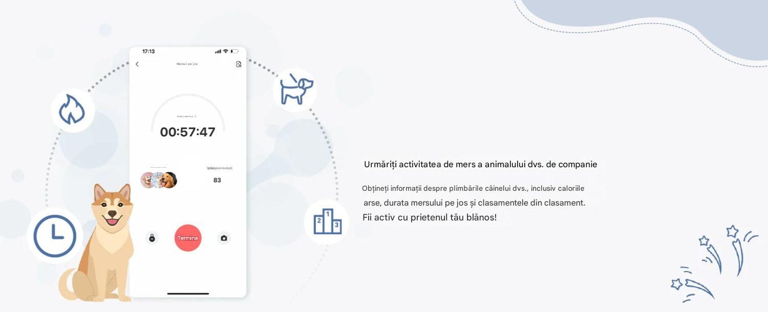 Aplicație multifuncțională: Aplicația specială oferă numeroase funcții, inclusiv protecție împotriva pierderii, monitorizarea stării de sănătate a animalului, desenare cu inteligență artificială, fotografiere, memento-uri și notițe, oferind astfel o îngrijire completă pentru animalul dvs. de companie.