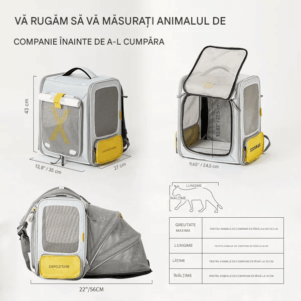 Un rucsac practic și aerisit de la Petkit pentru câini mici și pisici, care asigură confortul animalului dvs. de companie în timpul călătoriilor și acces continuu la aer proaspăt. Rucsacul este proiectat pentru transport ușor, pliere și relaxare. Aproape toate părțile rucsacului pot fi deschise rapid cu fermoar și pliate la o dimensiune minimă. Astfel, poate fi depozitat în bagajul de mână sau într-un alt rucsac. Petkit Breezy XZone poate fi și extins! Și ușor îl puteți transforma într-un cort confortabil pentru momentele de relaxare după o călătorie lungă. Este potrivit pentru animale mici de companie, cu o greutate de până la 6 kg.