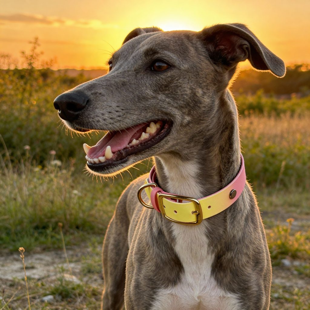 Zgarda de design din biothane cu cataramă – ușoară, rezistentă la apă și extrem de confortabilă. Acest accesoriu de design combină stilul modern cu funcționalitatea practică de zi cu zi.